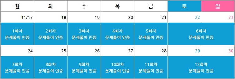 - 회차별 문제풀이 인증은 매일 자정 전까지 마치셔야 합니다.