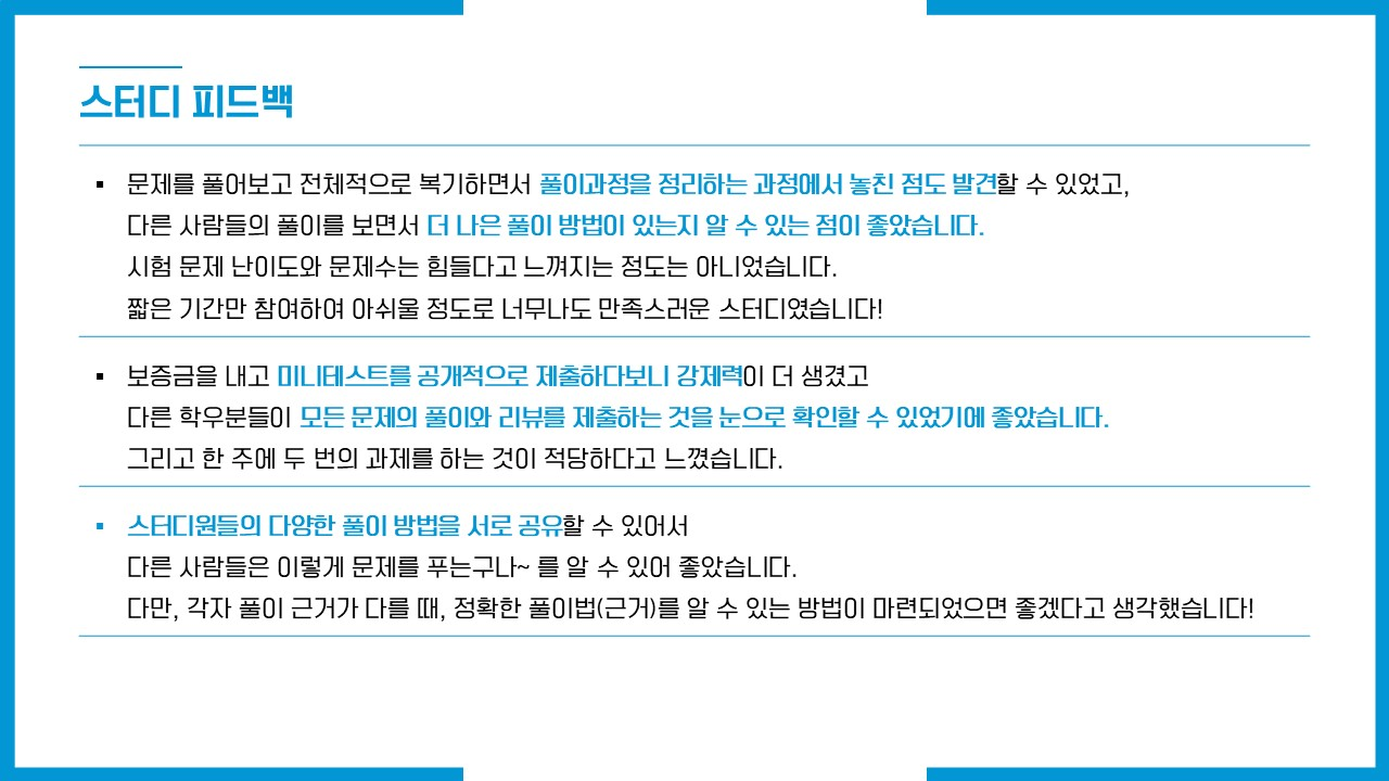 - 스터디 자료 제공 및 인증에 관한 보다 자세한 내용은 신청자 분들께 추후 안내해드리겠습니다.